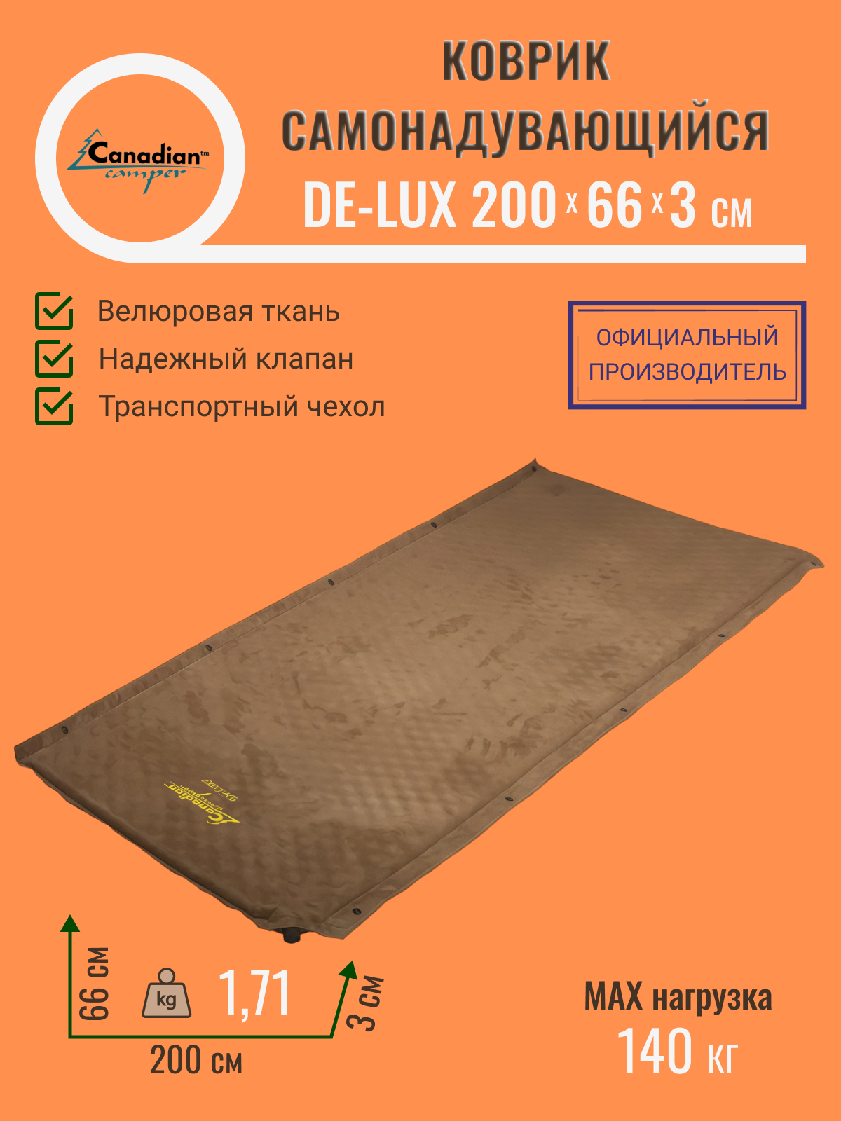 Самонадувающийся коврик De-Lux 200*66*3 см (цвет khaki)