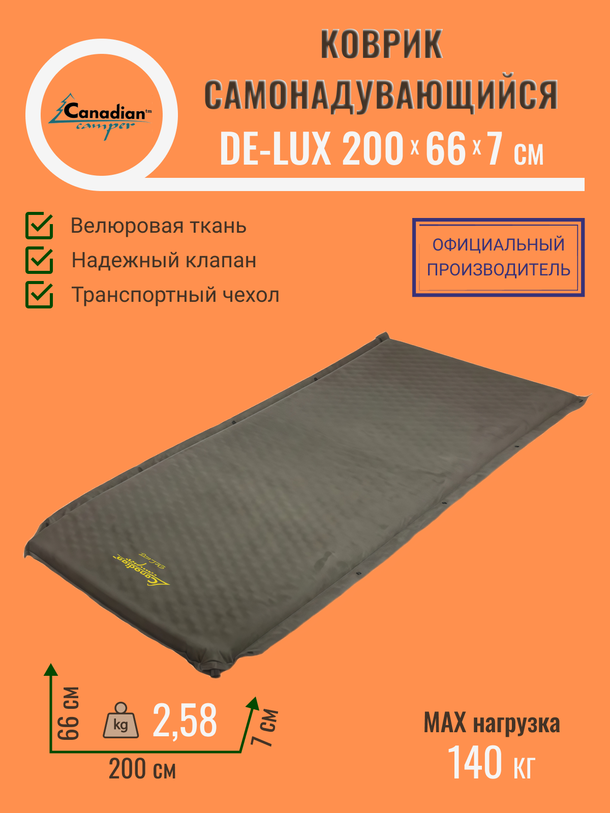 Самонадувающийся коврик De-Lux 200*66*7 см (цвет grey)