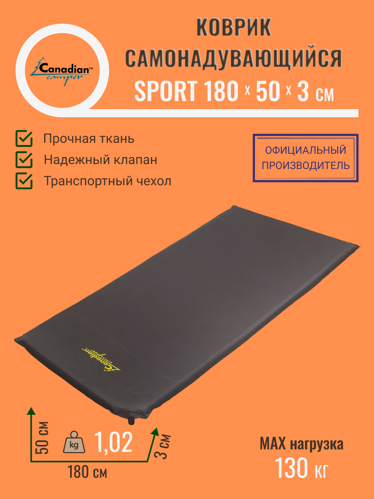 Самонадувающийся коврик Sport 180*50*3 см (цвет grey)