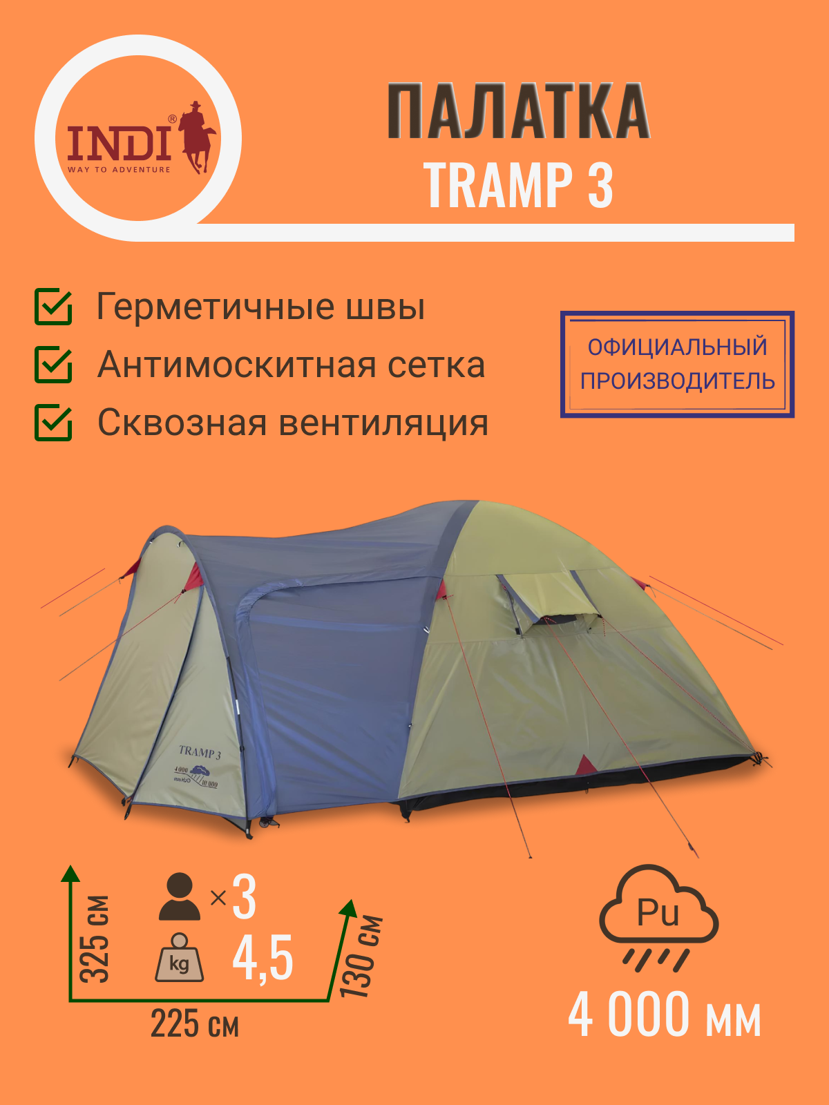 Водонепроницаемость тента, мм. водяного столба :4 000
